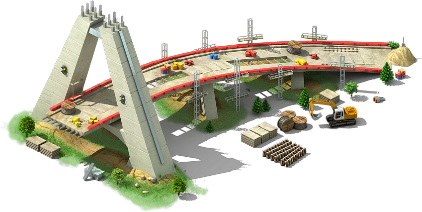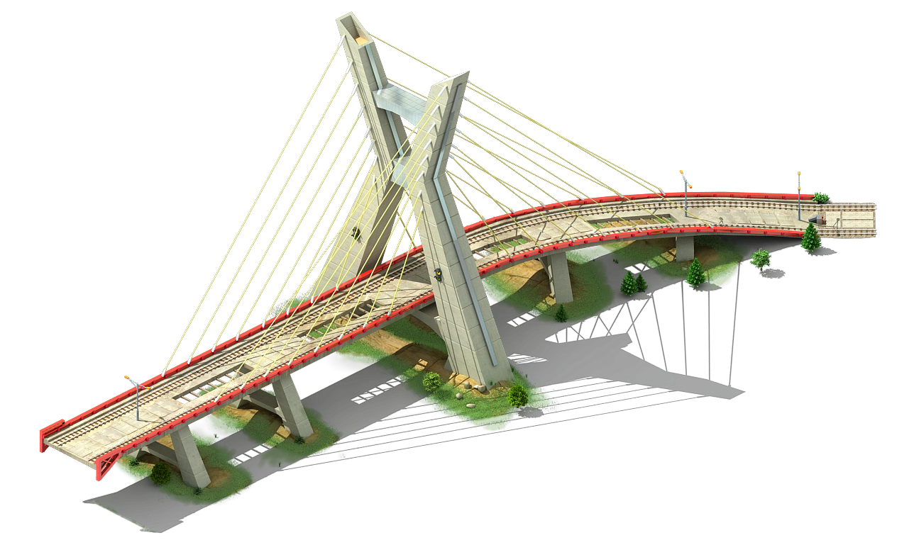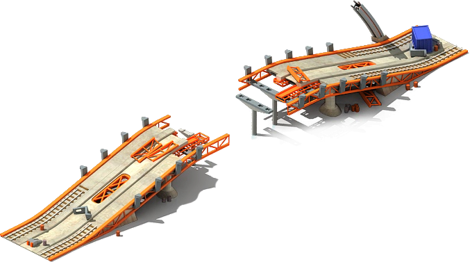 Se necesita un total de 1.977 activos para completar la construcción de todas las estructuras del ferrocarril (excluyendo el taller y estaciones). Esto es equivalente a 1977